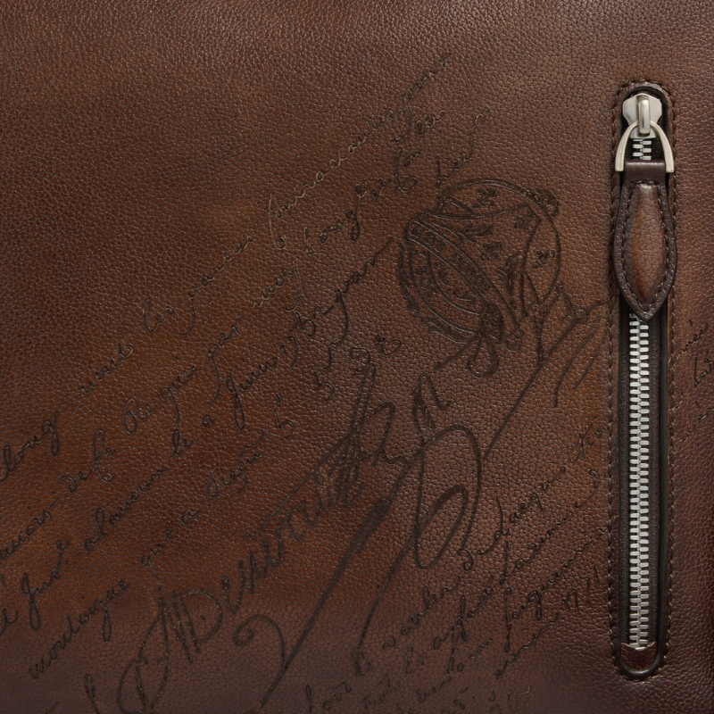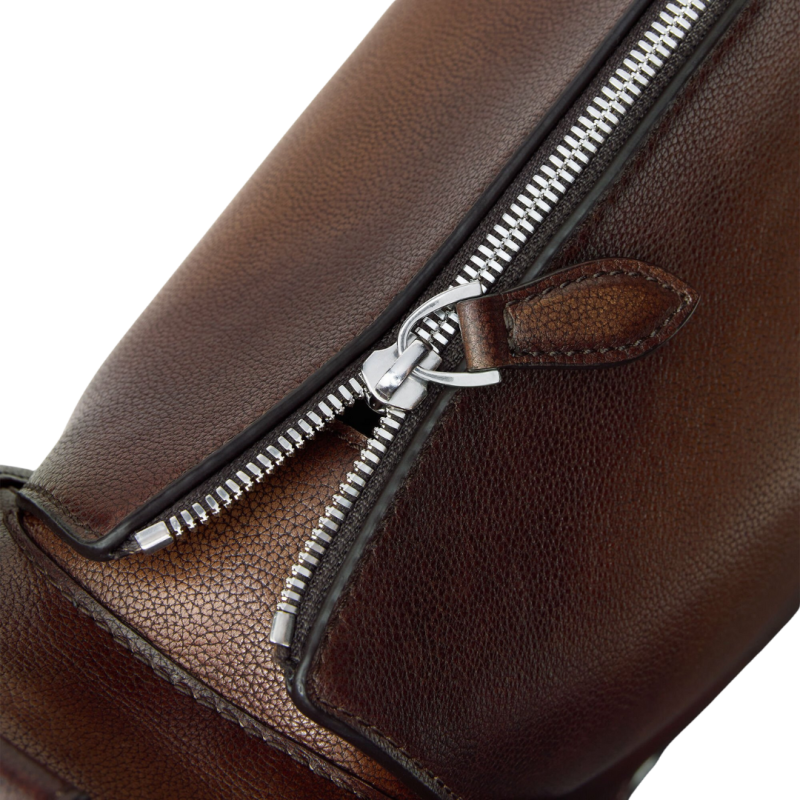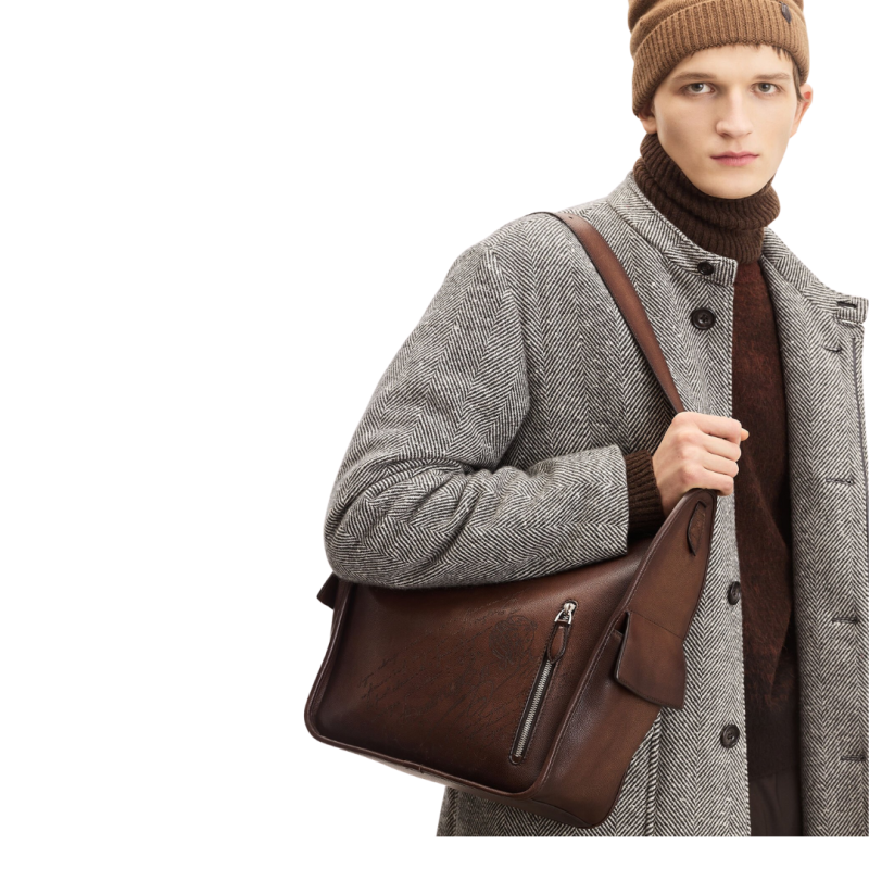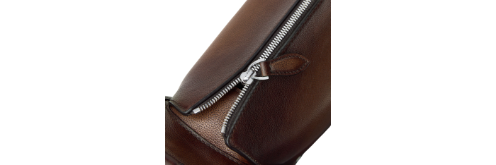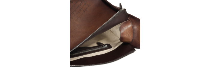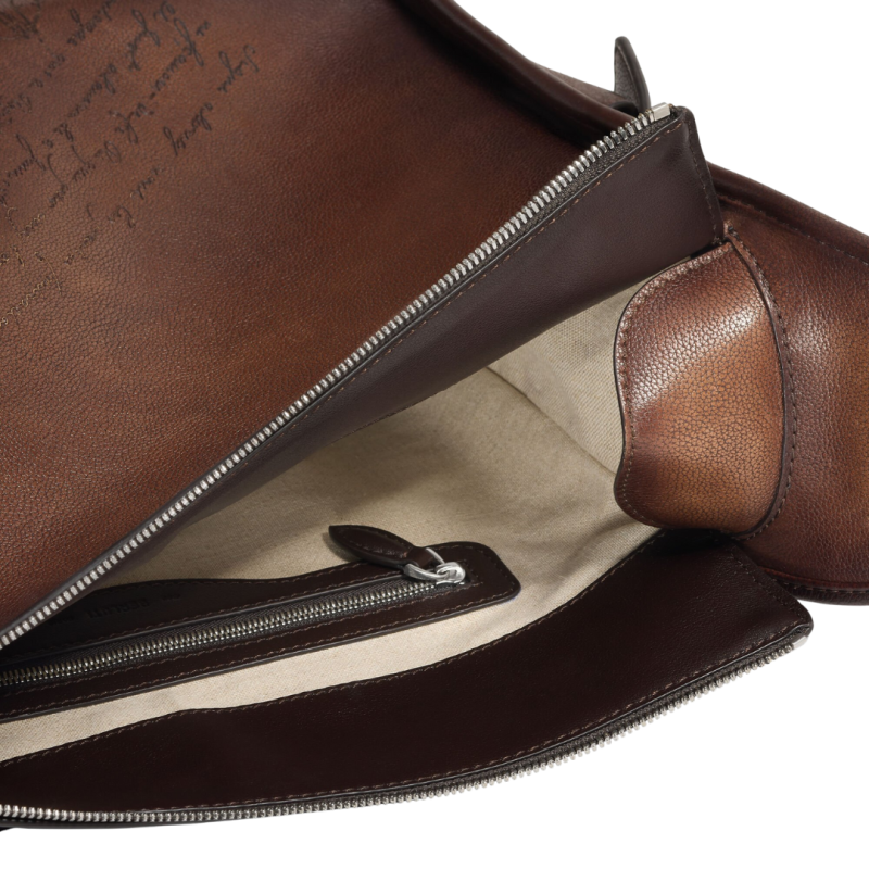 La nouvelle ligne Périple avec sa construction, ses multiples poches, et son porté main libre est la nouvelle proposition de la Maison pour ceux qui recherchent un vrai sac Berluti, mais doté d'une forme adaptée aux nouveaux usages. Poche zippée, scritto, large fond en une seule pièce de cuir, rien ne manque.