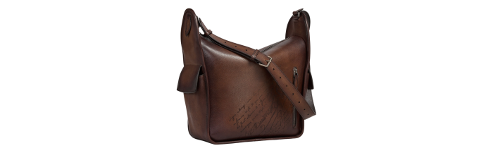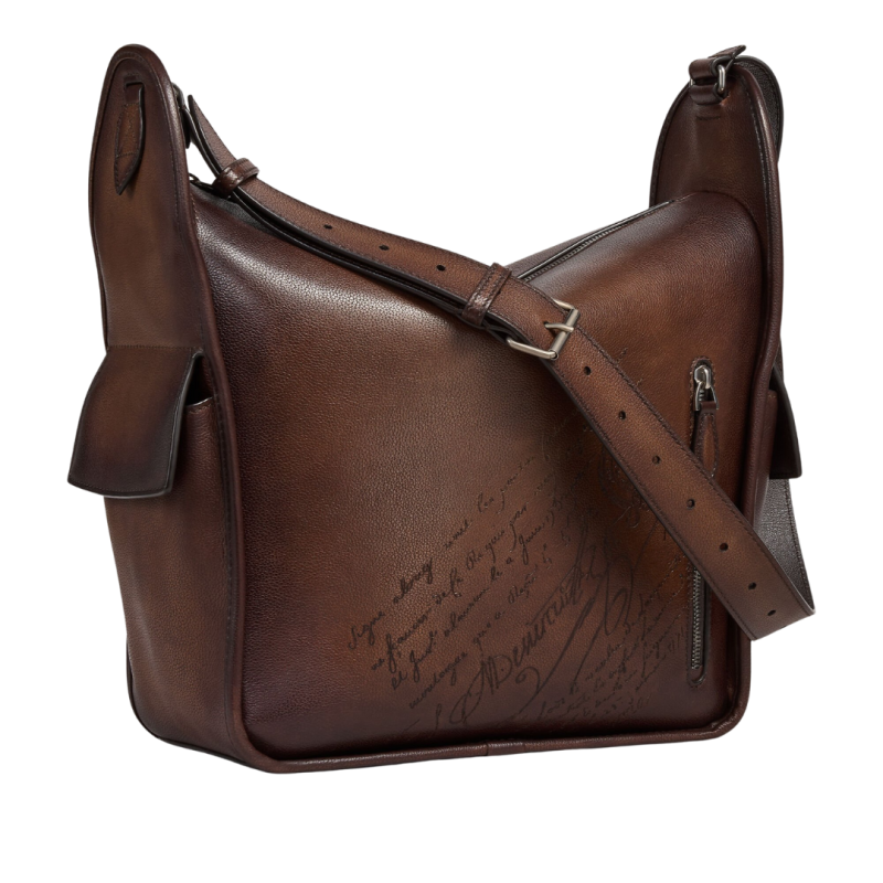 BERLUTISac Bandoulière Périple Hobo Cuir marron Scritto