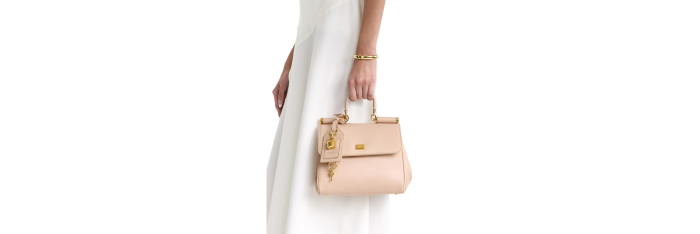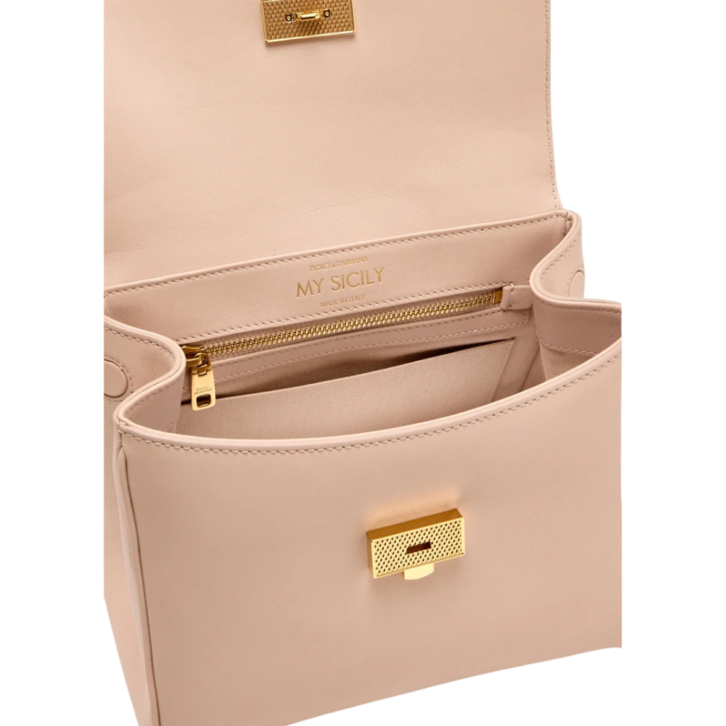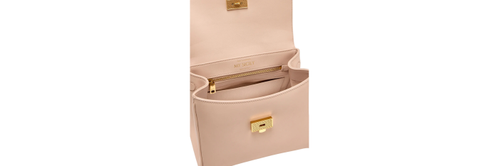 Sac porté main My Sicily Petit cuir veau plongé rose poudré charms bandoulière