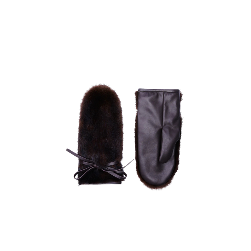 - Moufles en vison et cuir