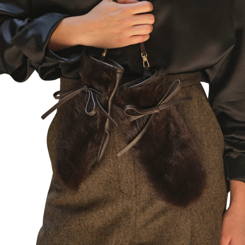 Mouffle vison marron chocolat noir Nœud