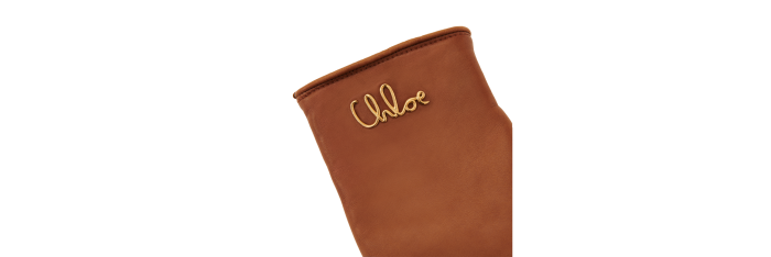 CHLOEGants Iconic cuir agneau souple marron gold logo doré