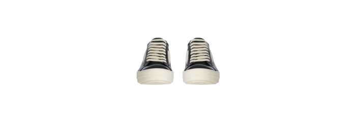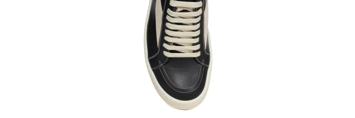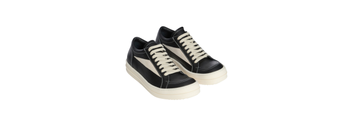 Baskets vintage Rick Owens Concordians automne-hiver 2025 en cuir de vachette pleine fleur noir/lait/lait et daim.