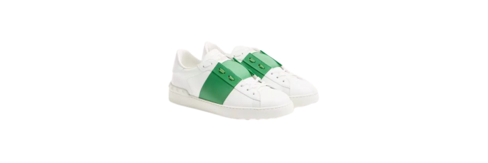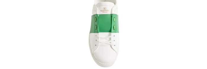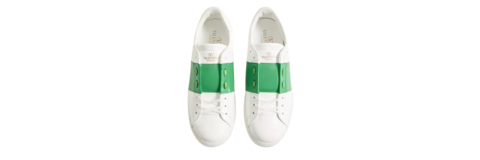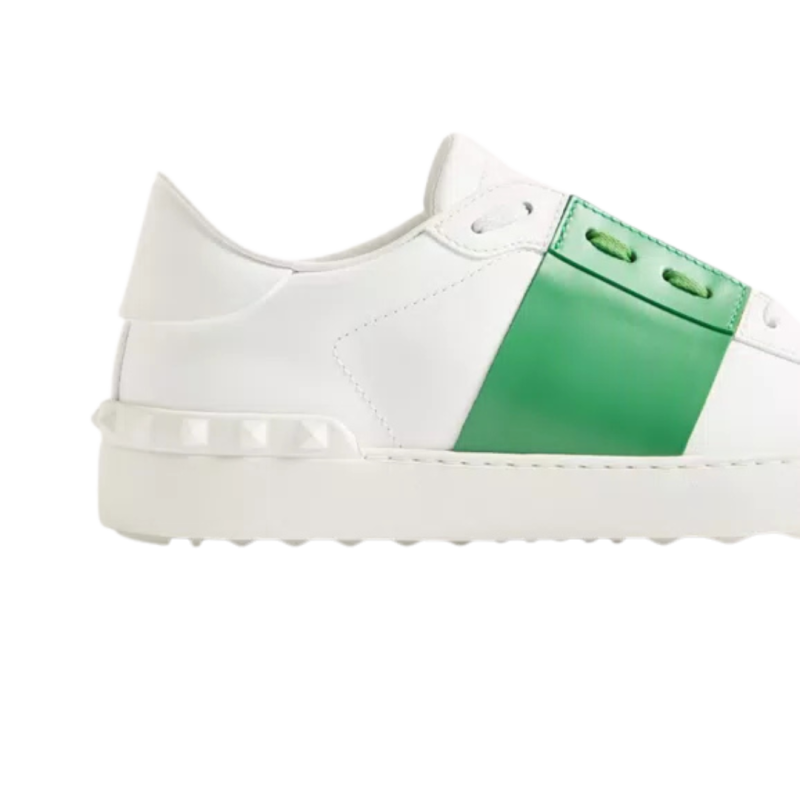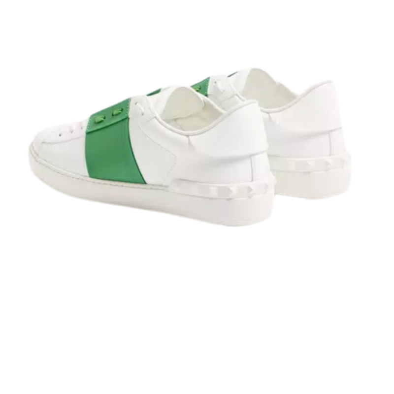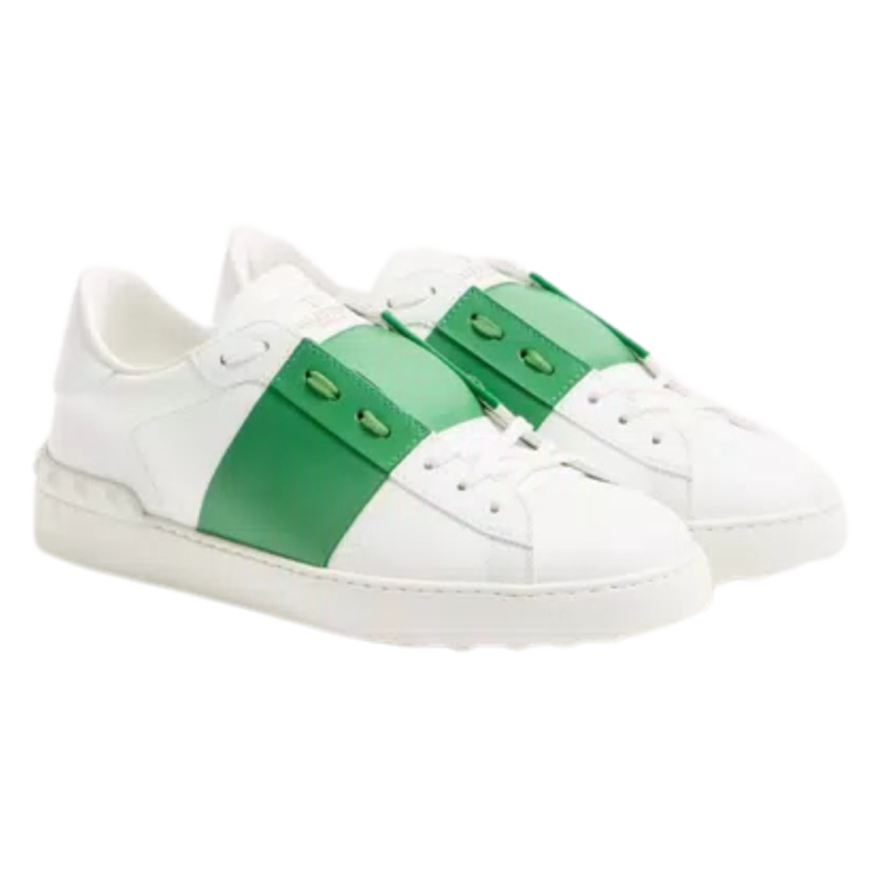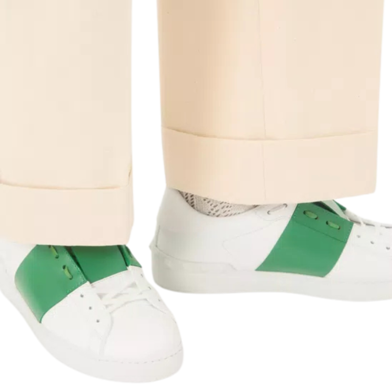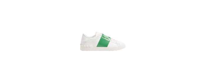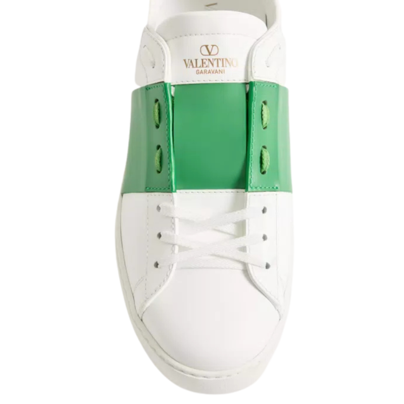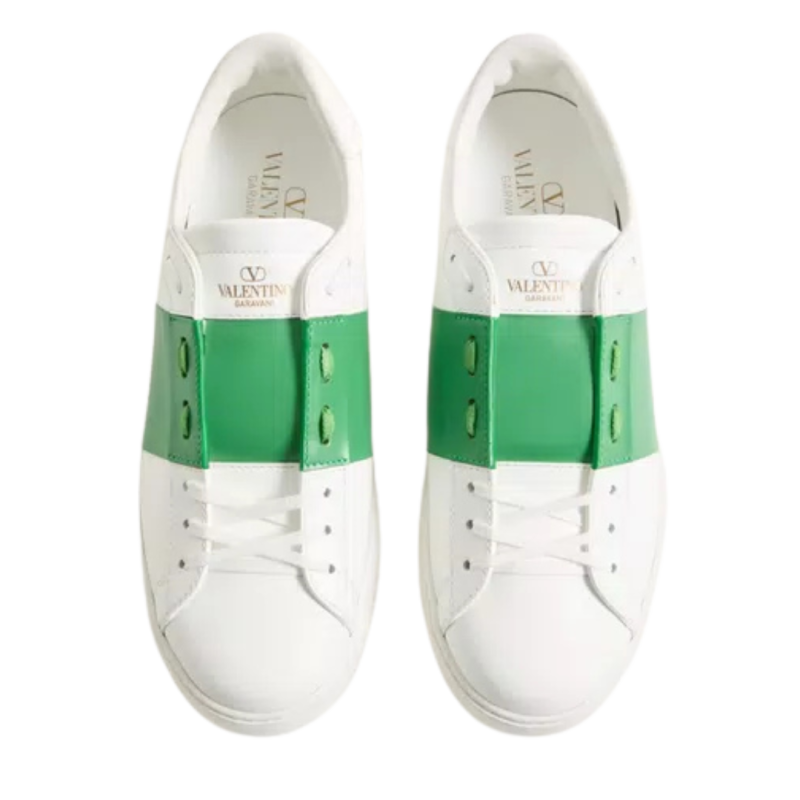 VALENTINOBaskets Sneakers Open cuir veau blanc bande verte