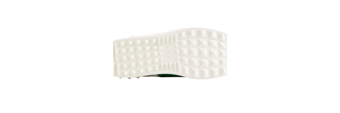 Semelle en caoutchouc blanc avec clous décoratifs en caoutchouc à l'arrière.