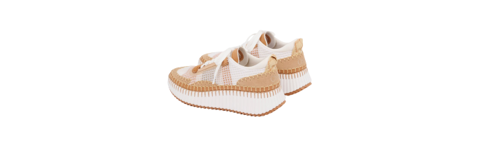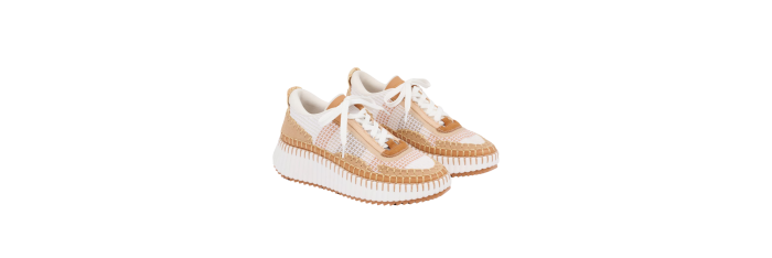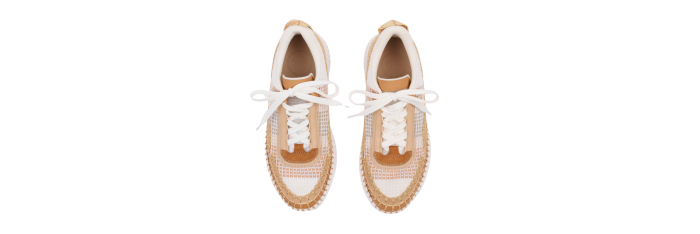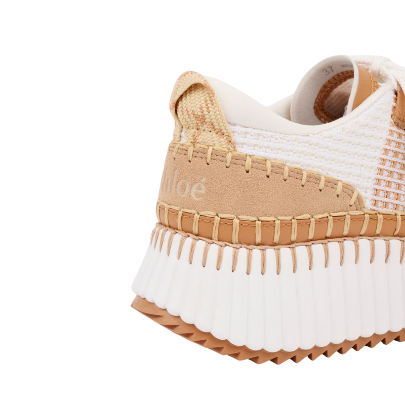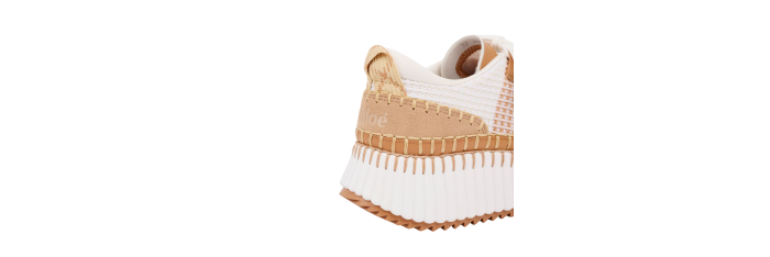 Réalisées à partir de matériaux recyclés, les baskets Nama offrent un contraste de couleurs et de textures. Ce modèle repose sur une semelle iconique, légère et ultra confortable. Soigneusement réalisés à la main, ses points de feston requièrent 4,5 heures de travail. Un logo Chloé débossé signe ces sneakers à l’arrière.