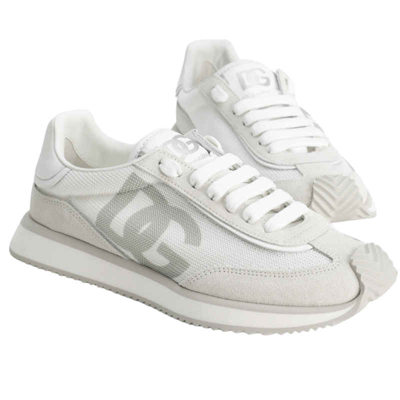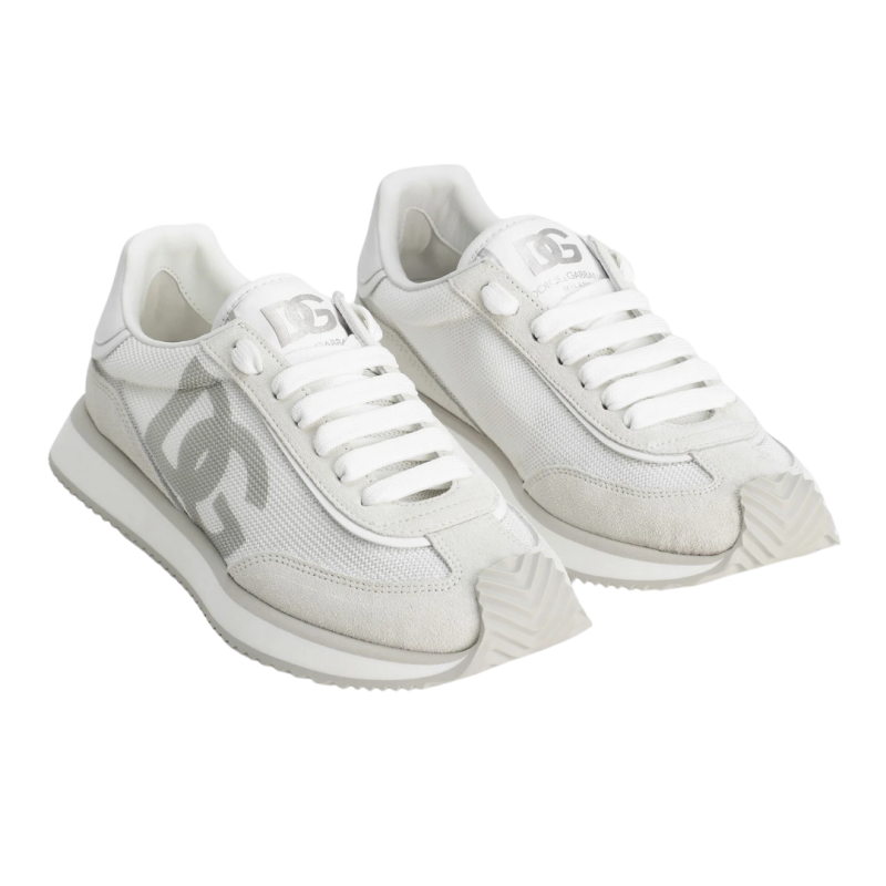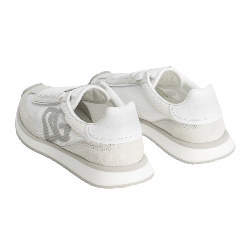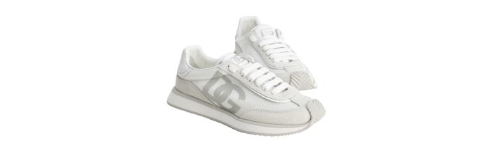 Légèreté résolument tournée vers l'avenir. Les nouvelles sneakers DG CUSHION arborent une empeigne en daim bicolore souple qui met en valeur le logo DG croisé et l'imprimé contrastant sur le côté en mesh. La semelle en caoutchouc légère et ajustée assure un confort optimal, sans compromis sur le style. L'étiquette jacquard apporte la touche finale et une élégance incomparable.