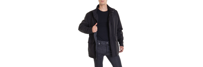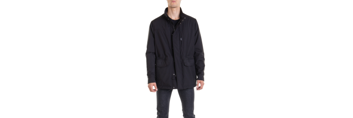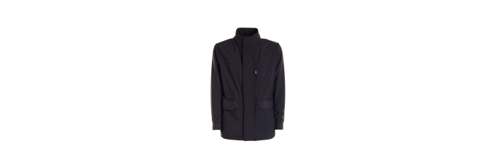 BRIONIVeste parka zippée laine cachemire bleu marine poches plaquées