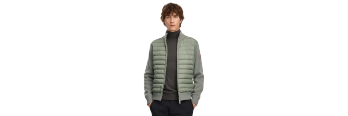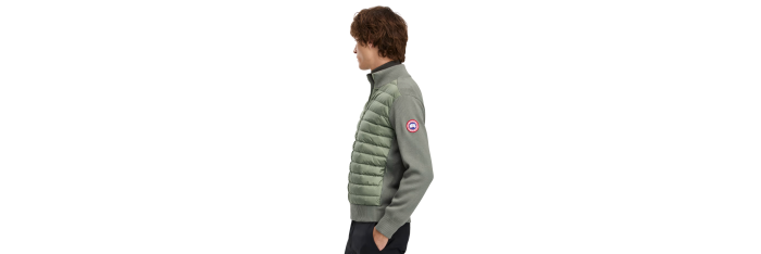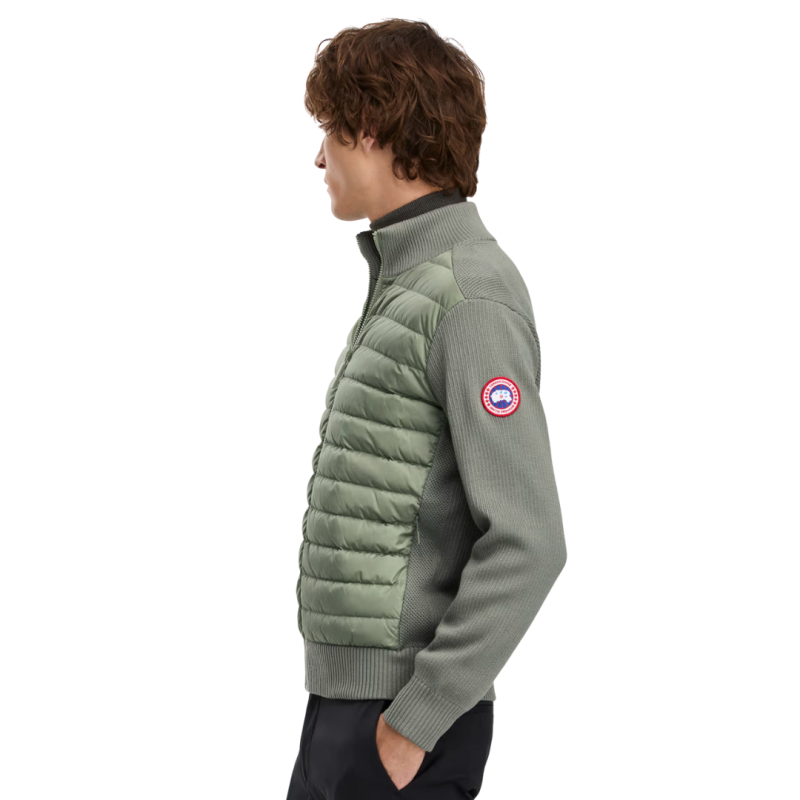 CANADA GOOSEVeste cardigan Hybridge zippée bi matière laine mérinos vert sauge