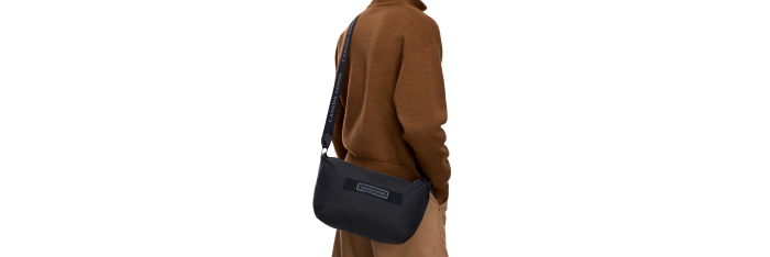 Se range dans la poche intérieure gauche. Se transforme en sac à cordon grâce à sa bandoulière.