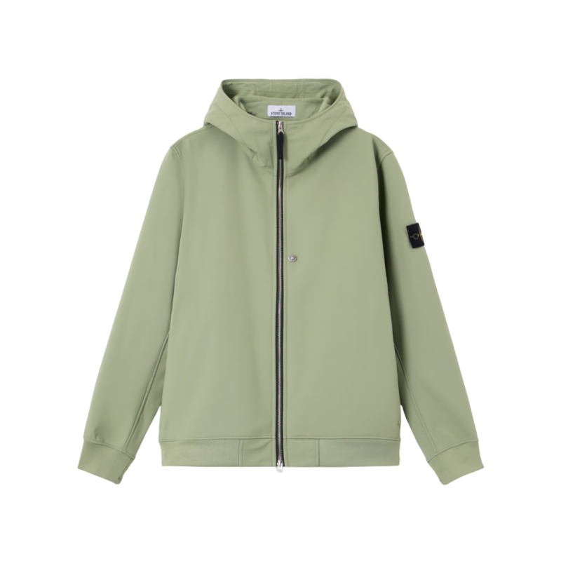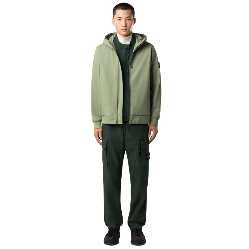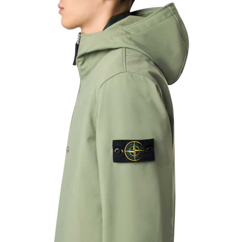STONE ISLANDBlouson léger zippé à capuche nylon soft Shell vert sauge