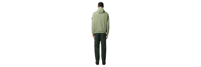Capuche avec un cordon de serrage de contour et un cordon de serrage postérieur. Poches mains verticales à glissière dissimulée. Deux poches intérieures. Bandes plates sur les côtés et sous les manches, avec œillets aux emmanchures. Badge Stone Island sur la manche gauche. Poignets et bord inférieur côtelés et élastiqués. Pinces d'ajustement à l’arrière des épaules. Fermeture par glissière bidirectionnelle avec bouton-pression sur la poitrine.