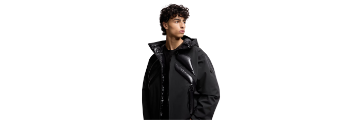 Réinterprétation expérimentale du manteau, la doudoune Jumquat Moncler x A$AP Rocky est caractérisée par des détails matelassés tridimensionnels. Clin d’œil à l’agence de création AWGE d’A$AP Rocky, son nom orne la doudoune courte sous la forme d’un imprimé.