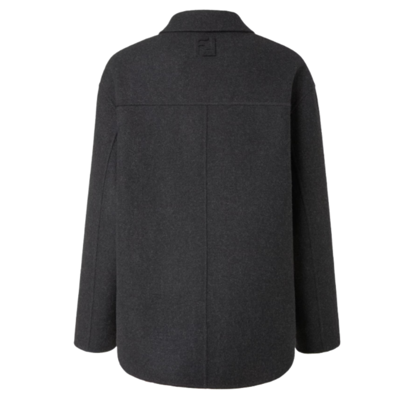 FENDImanteau court caban croisé bouton laine gris anthracite FF relief dos