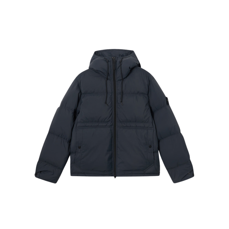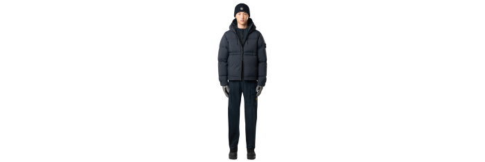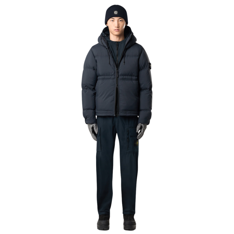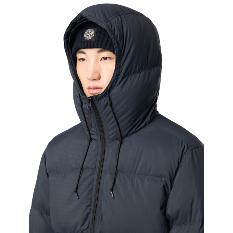 Capuche rembourrée à cordon de serrage de contour. Poches mains verticales pressionnées. Une poche intérieure boutonnée ornée du logo Stone Island Compass brodé. Badge Stone Island sur la manche gauche. Bouton-pression au niveau des poignets pour fixer le rabat triangulaire de protection des mains dans la manche ; patte de réglage pressionnée. Cordon de serrage au bas du vêtement. Fermeture zippée bidirectionnelle.