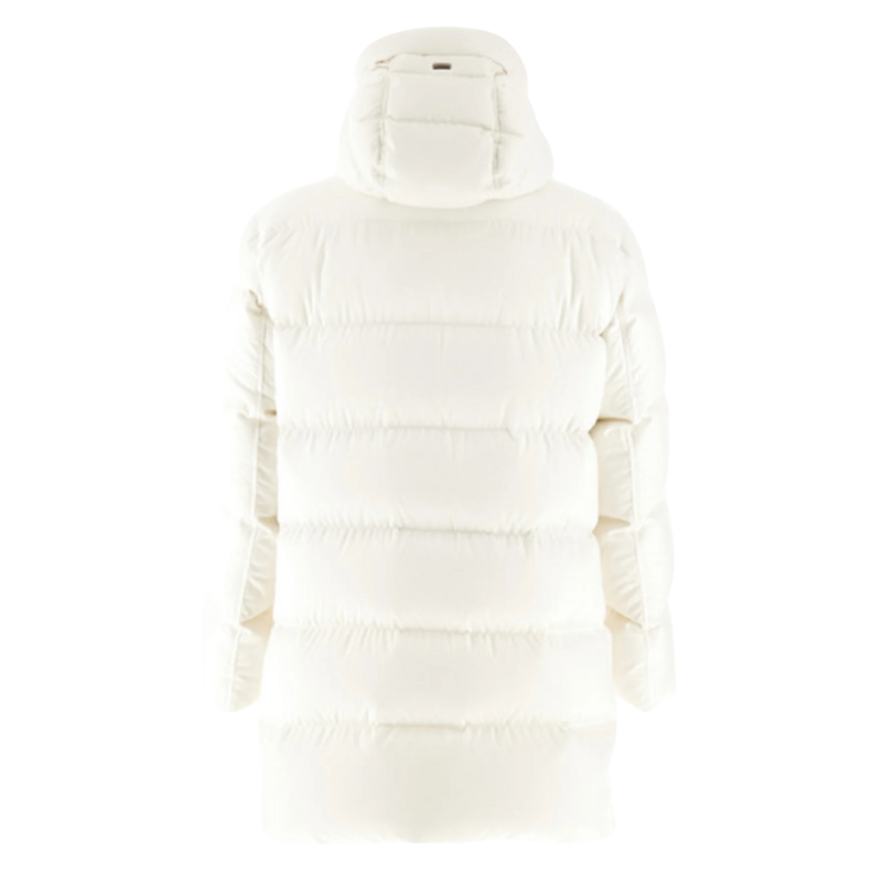 HERNODoudoune zippée longue nylon blanc col fourrure