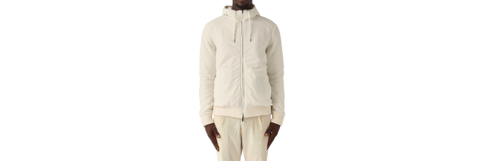 HERNOCardigan à capuche bi matière pure laine nylon écru