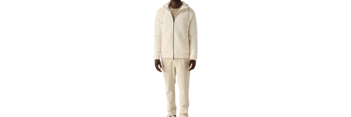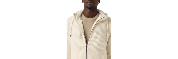Cardigan à capuche bi matière pure laine nylon écru
