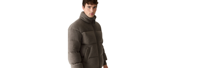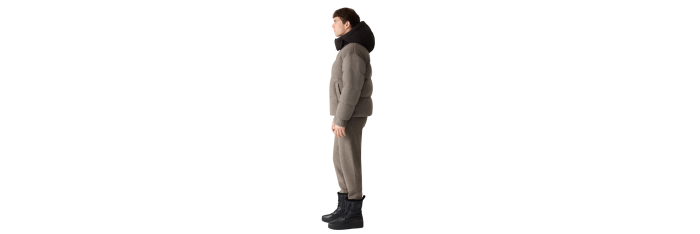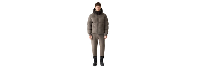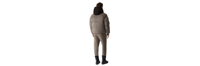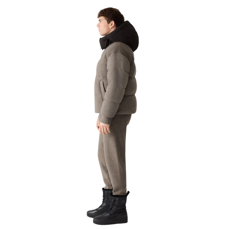 Le manteau en duvet GRIFFEN est confectionné dans un mélange de laine et de cachemire haut de gamme avec ornements en tricot à côtes. Conçu pour faire la transition entre les saisons, il est doté d'un capuchon contrastant amovible à visière coupe-vent et de fentes d'aération aux aisselles. Un ourlet à barillets ajustables et des poches isolées à fermeture éclair offrent une protection adaptable, alors que la silhouette décontractée marie chaleur raffinée et style hybride moderne.
