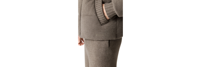 Extérieur : 65% laine, 35% cachemire. Doublure : 82% polyamide/nylon, 18% élasthanne/spandex. Bourrure : 90% duvet, 10% plumes.