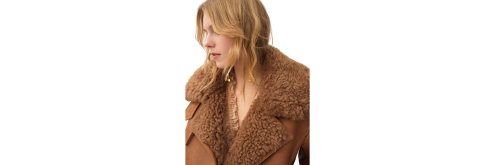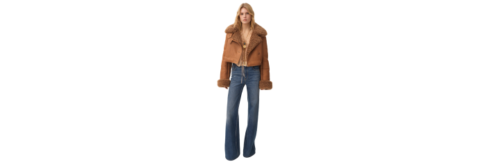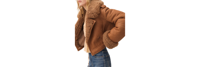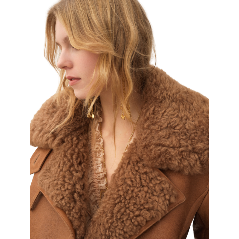 CHLOEVeste courte droite peau retournée mouton marron gold shearling