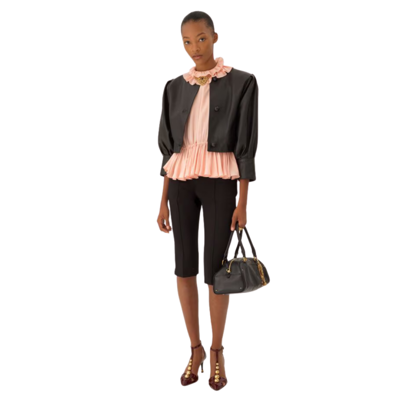 CHLOEVeste courte sans col cuir nappa plongé noir manches 3/4