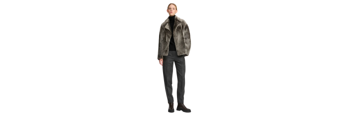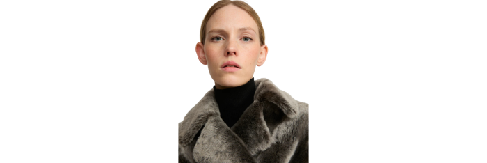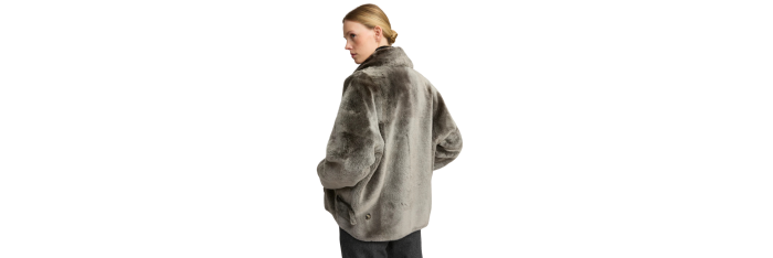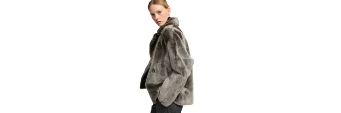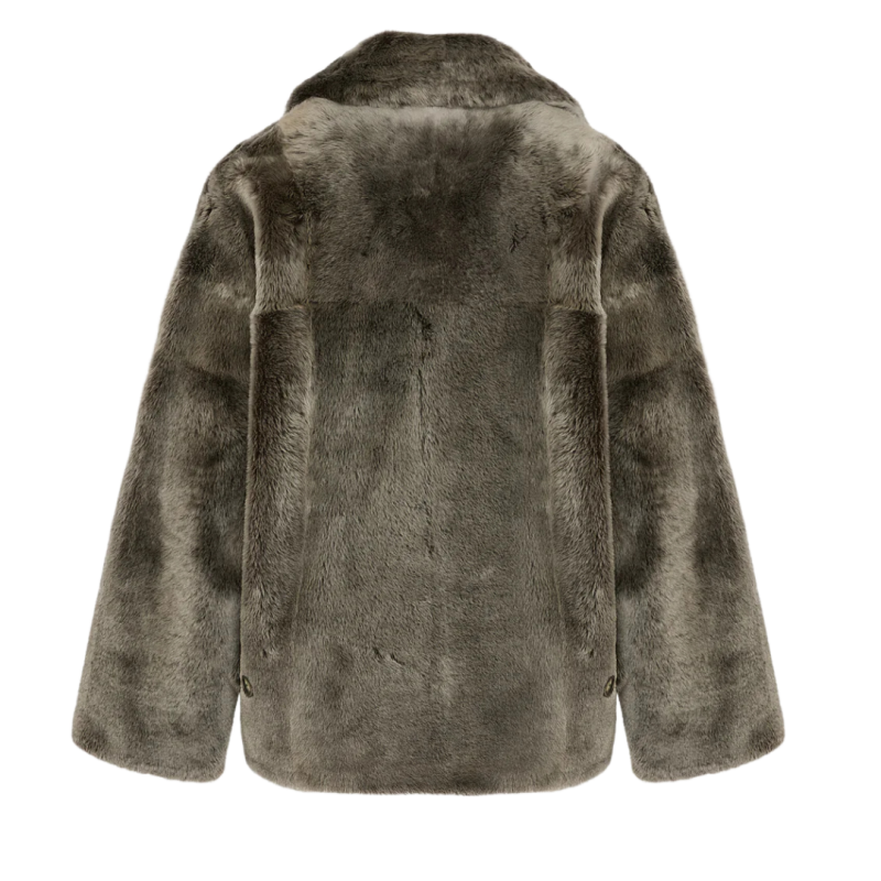 Une version courte et très douce du caban classique, avec une coupe ample réalisée dans une peau lainée à la fois brillante et soyeuse. Des pattes de serrage et un col cranté apportent une allure supplémentaire.