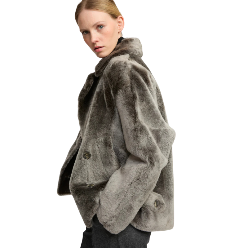 YVES SALOMONVeste caban peau lainée agneau gris