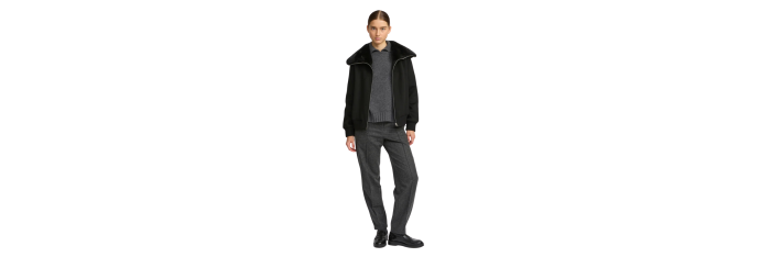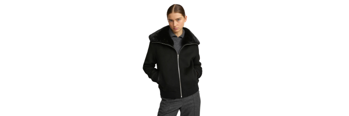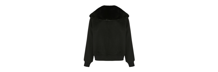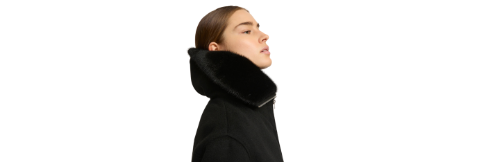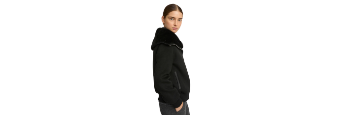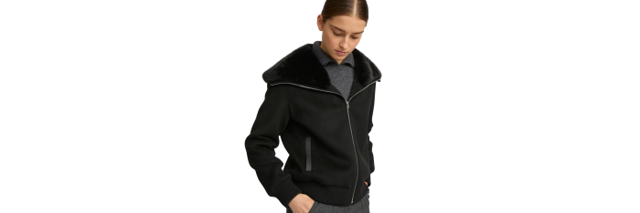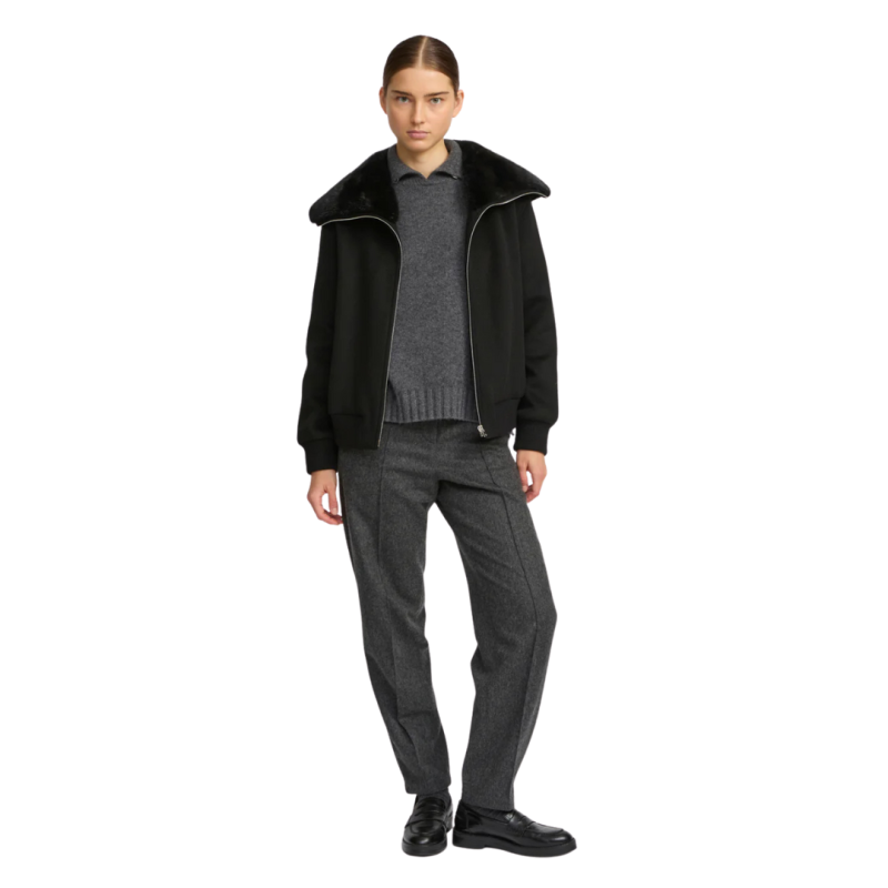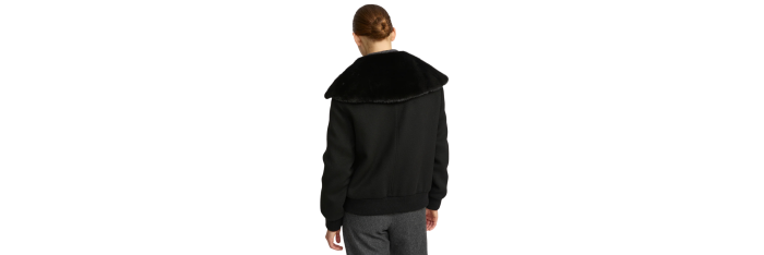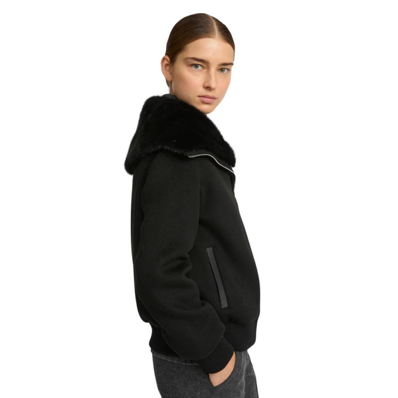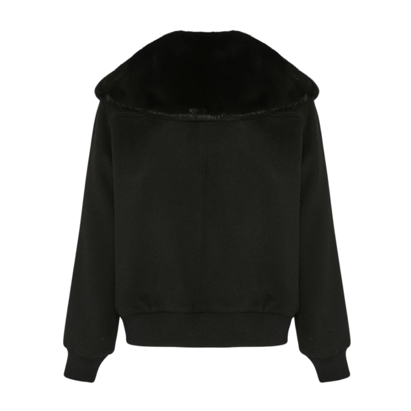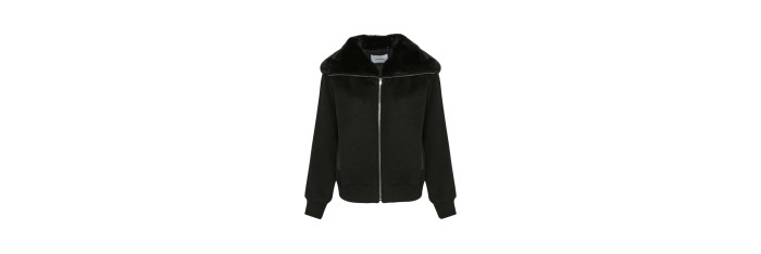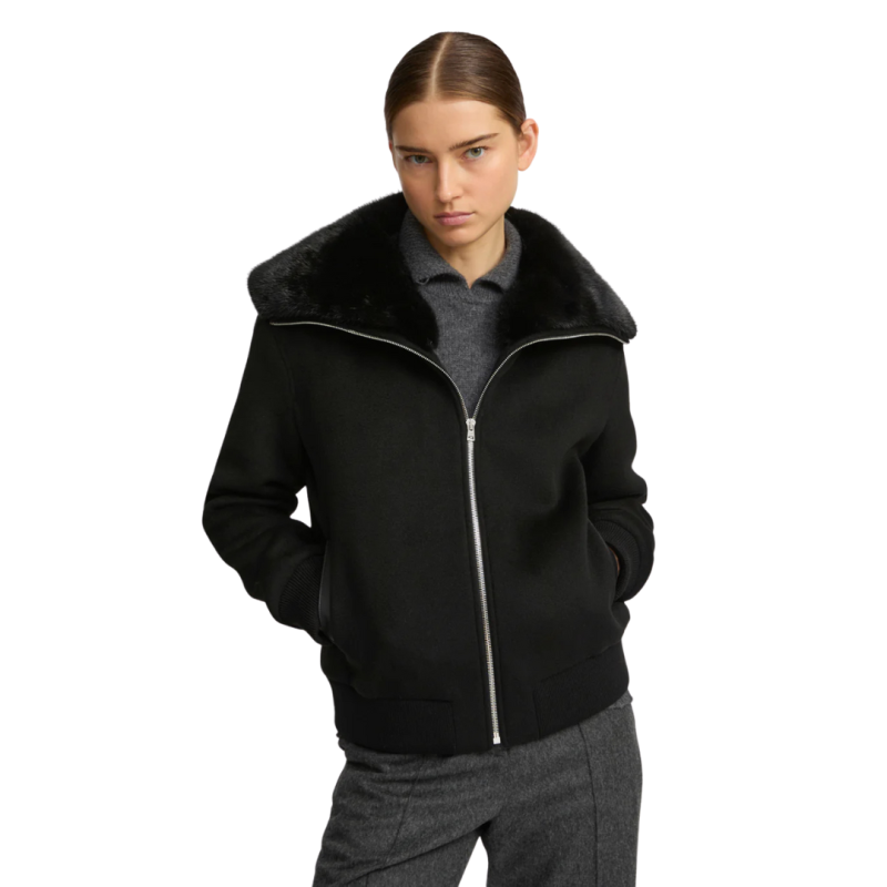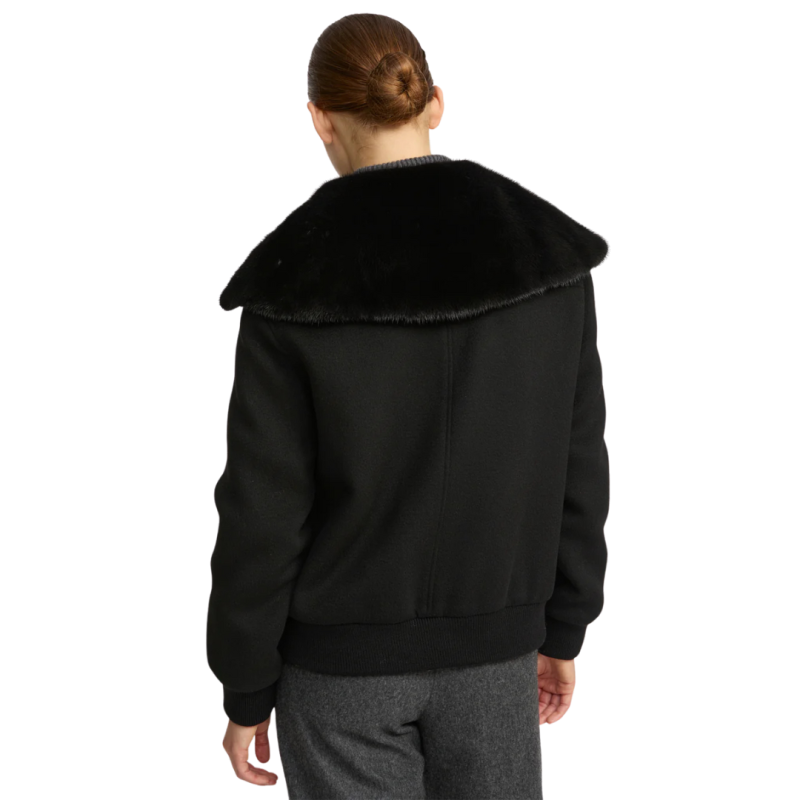 YVES SALOMONBlouson court laine cachemire noir col vison amovible