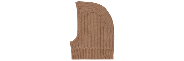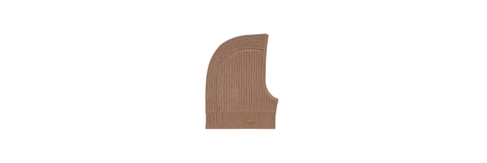 Cette cagoule illustre l'élégance raffinée du défilé Lacoste Automne/Hiver 2025. Elle se distingue par sa maille épaisse et satinée au subtil jeu de points, alternant entre côtes et torsades. Un crocodile signature brodé finalise son design soigné.
