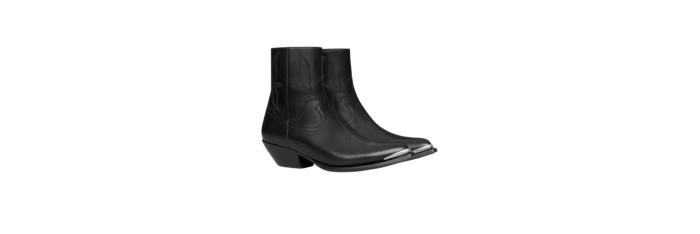 CELINEBoots Léon santiag zippée cuir veau noir brillant pointe métal