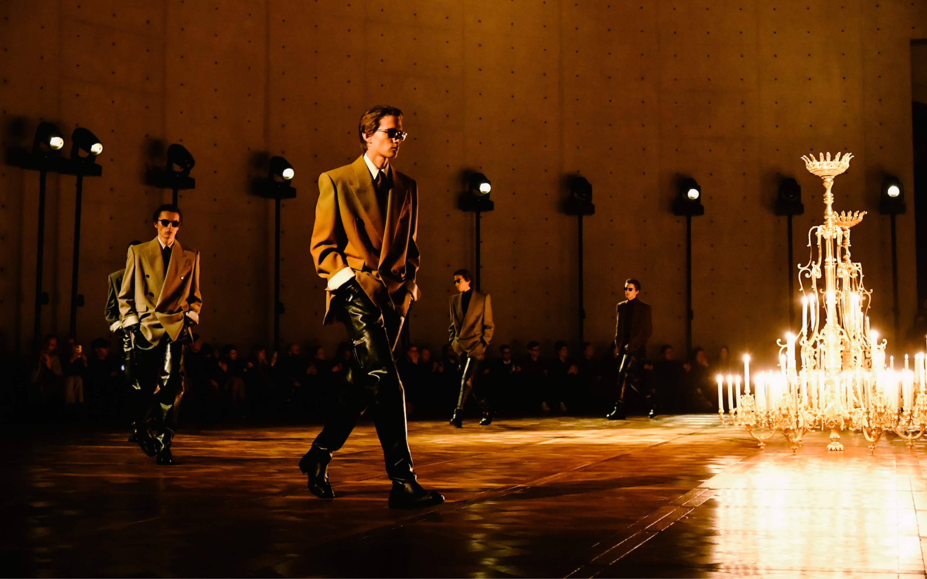 Large bracelet Cassandre cuir tannage végétal marron YSL or