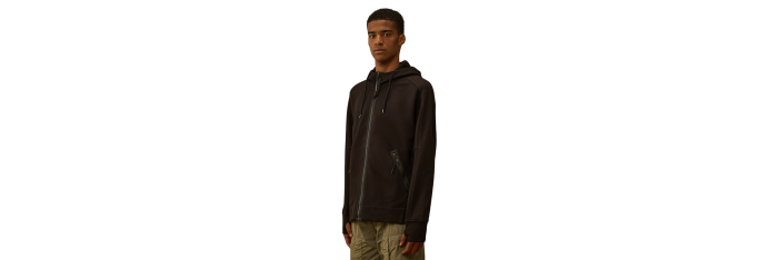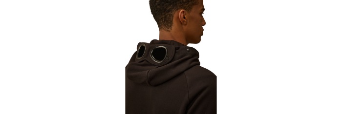 Sweat à lunettes confectionné en polaire à relief diagonal, un coton brossé à tissage diagonal de poids moyen. Le tissu doux assure le confort et la facilité de mouvement. Ce sweat-shirt est doté de la capuche réglable Goggle, emblématique de C.P. Company, de fermetures à glissière latérales, de poignets et d'un ourlet côtelés. Les poignets sont munis d'un trou pour le pouce. Coupe régulière.
