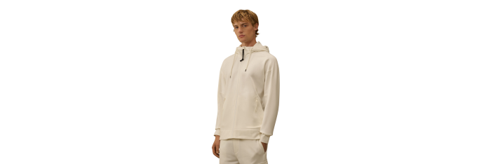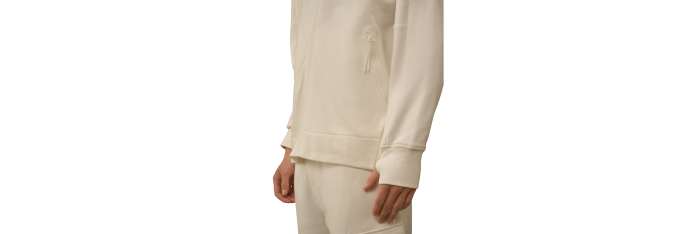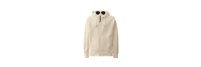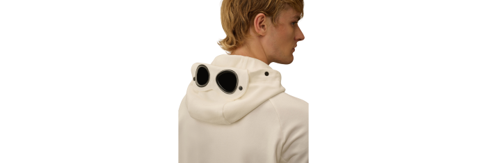 Sweat à lunettes confectionné en polaire à relief diagonal, un coton brossé à tissage diagonal de poids moyen. Le tissu doux assure le confort et la facilité de mouvement. Ce sweat-shirt est doté de la capuche réglable Goggle, emblématique de C.P. Company, de fermetures à glissière latérales, de poignets et d'un ourlet côtelés. Les poignets sont munis d'un trou pour le pouce. Coupe régulière.