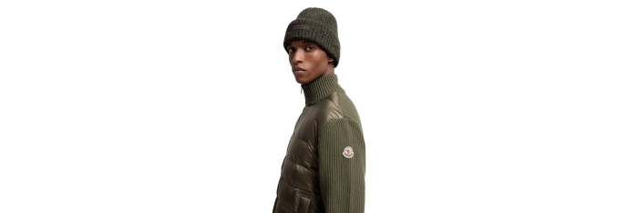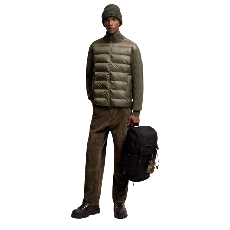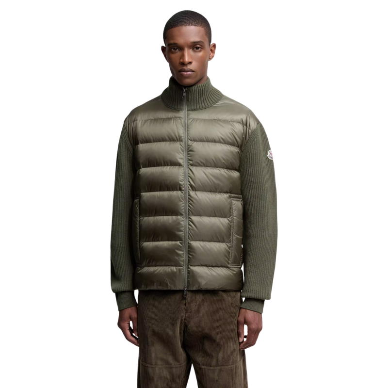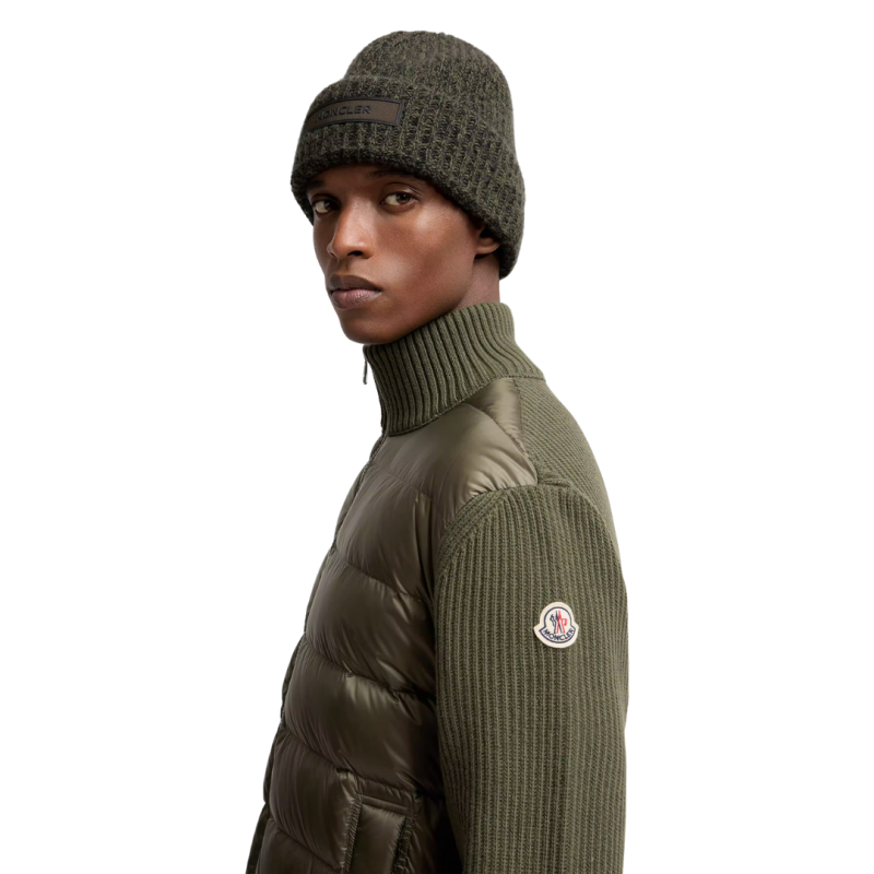 MONCLERCardigan zippé matelassé laine cachemire kaki