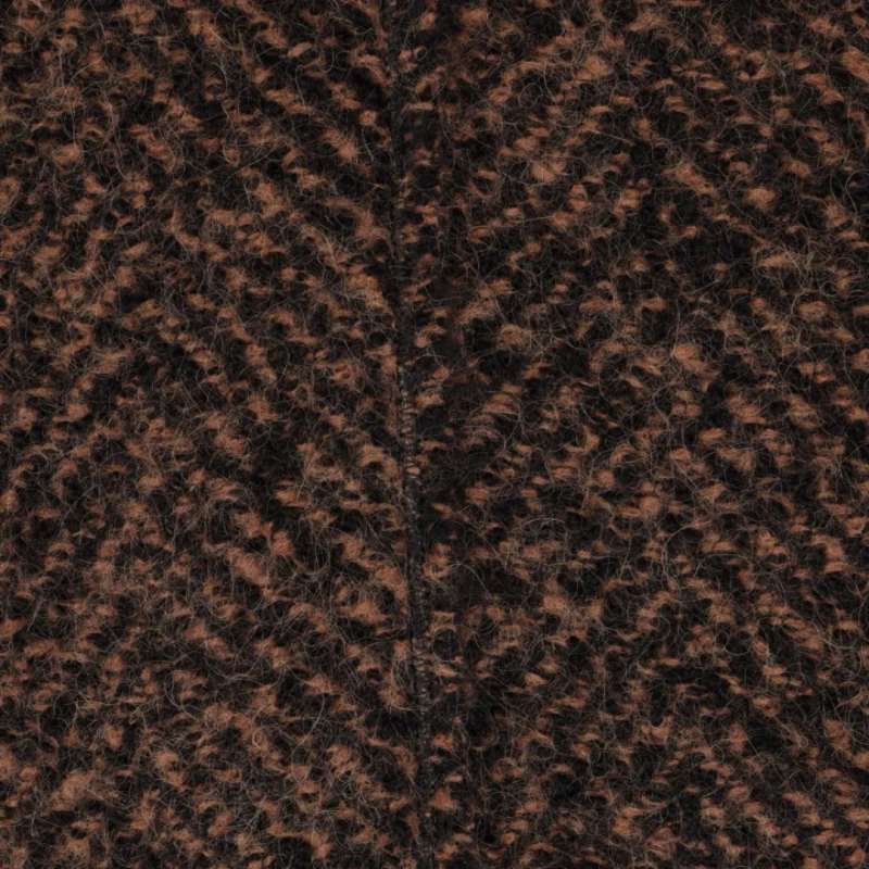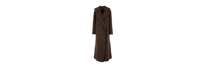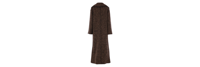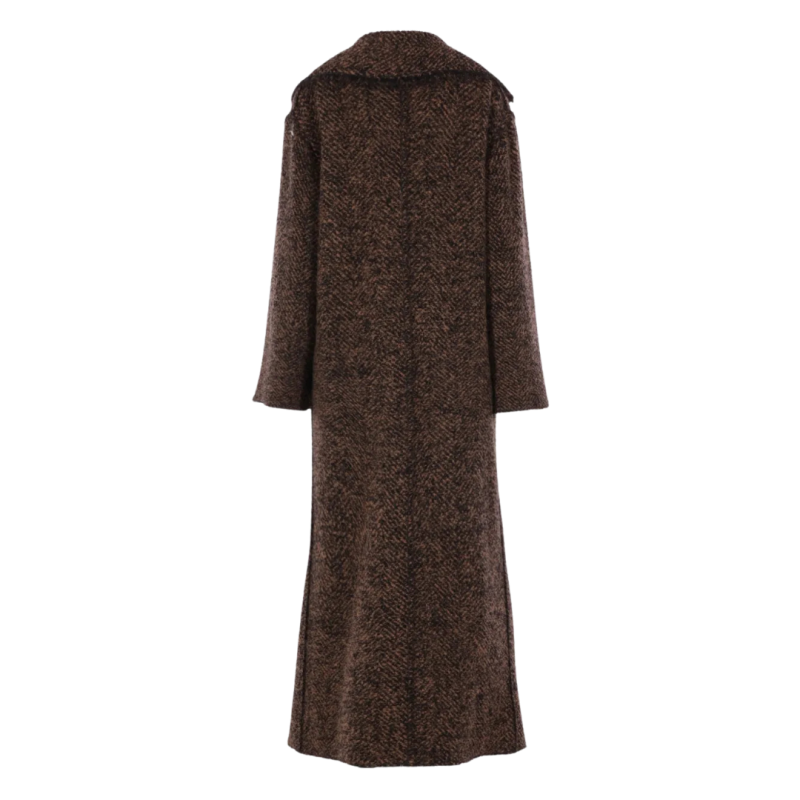 Manteau long croisé laine alpaga mélangée chevrons noir marron