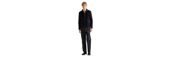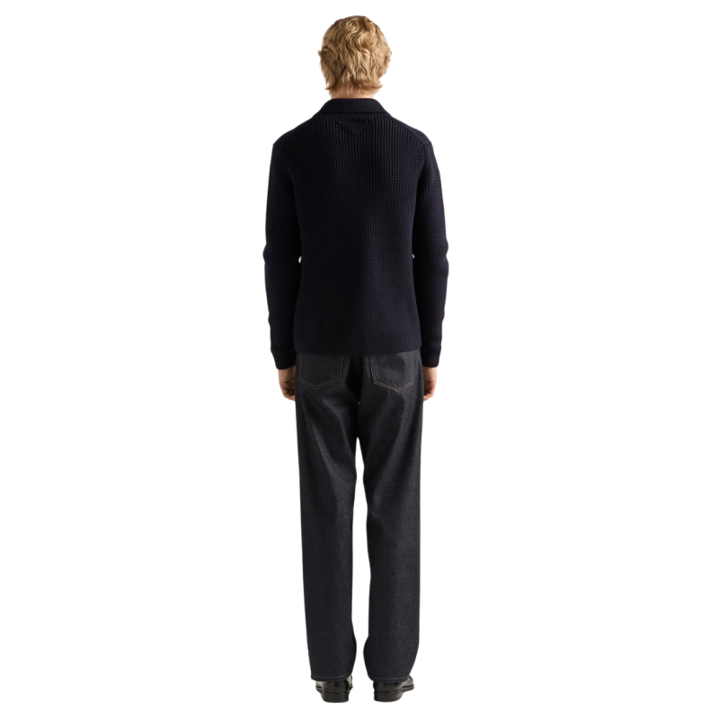 Ce cardigan coupe standard allie une forme épurée à une laine côtelée douce. Le logo triangulaire lui confère une touche unique.