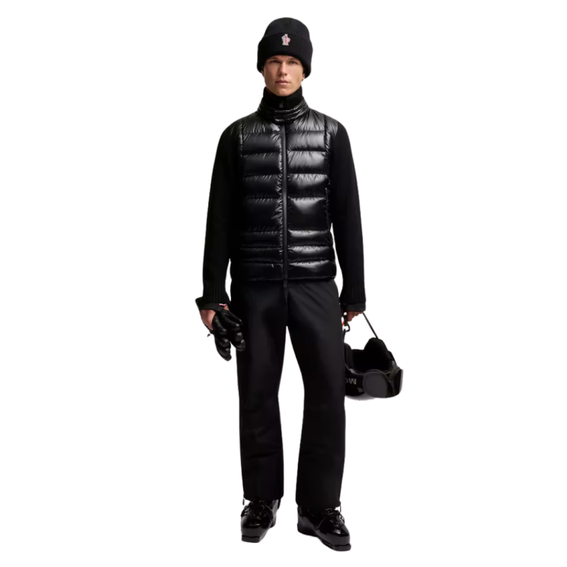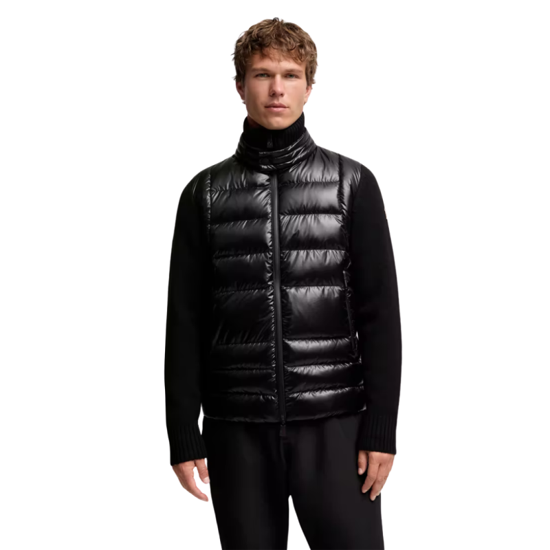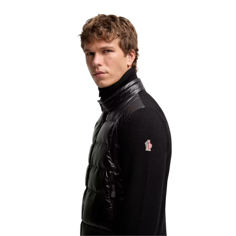 Cardigan zippé matelassé nylon laine noir Moncler Grenoble
