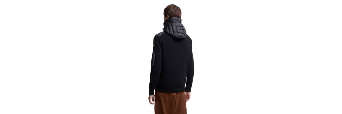 Cardigan à capuche zippé matelassé bi matière laine nylon bleu marine