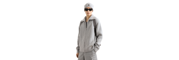 • Bord-côtes fins aux poignets et au col
