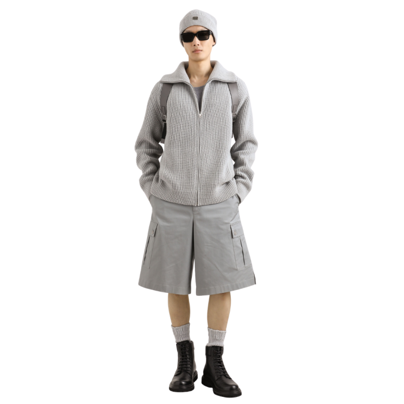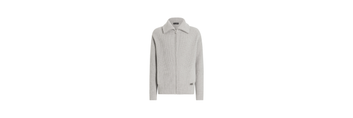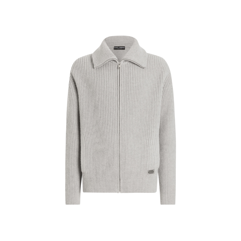 DOLCE & GABBANAGilet cardigan zippé laine vierge gris clair étiquette métal