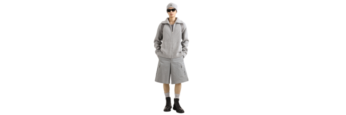 La collection DNA Homme réinvente le vestiaire masculin avec des contrastes audacieux, des détails soignés et des silhouettes innovantes. Les vêtements d'extérieur se distinguent par leurs lignes épurées et leurs matières techniques, alliant sportivité et sophistication dans les pulls, les sweats et les pantalons. Une palette de couleurs saisissante, comprenant le Noir Sicile, le caramel, le crème, le bordeaux et le gris pierre, s'associe à des imprimés iconiques comme le léopard et les pois, sublimant le style authentique et raffiné de la collection.