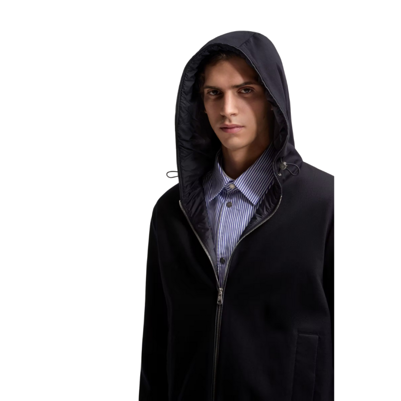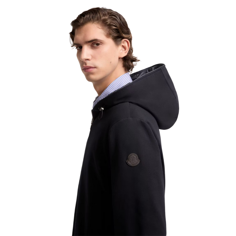 Sweat zippé coton mélangé bleu marine capuche logo cuir