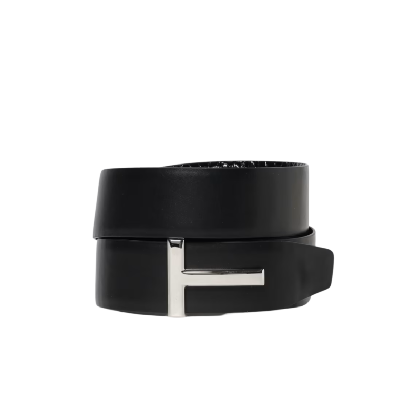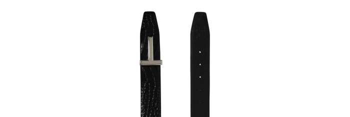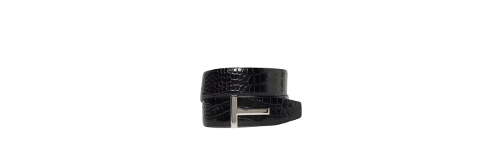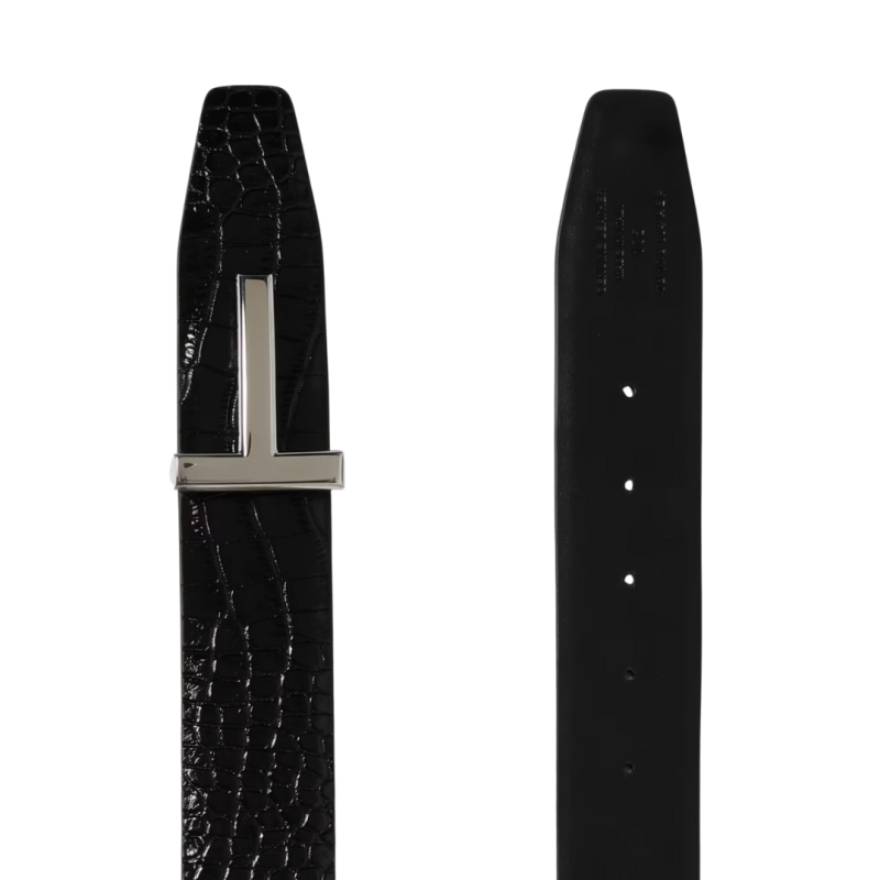 Ceinture cuir veau embossé croco boucle T argent