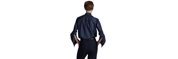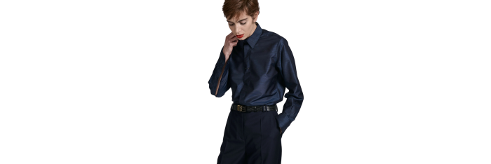 BARBARA BUIChemise manche longue laine soie bleu nuit piercing