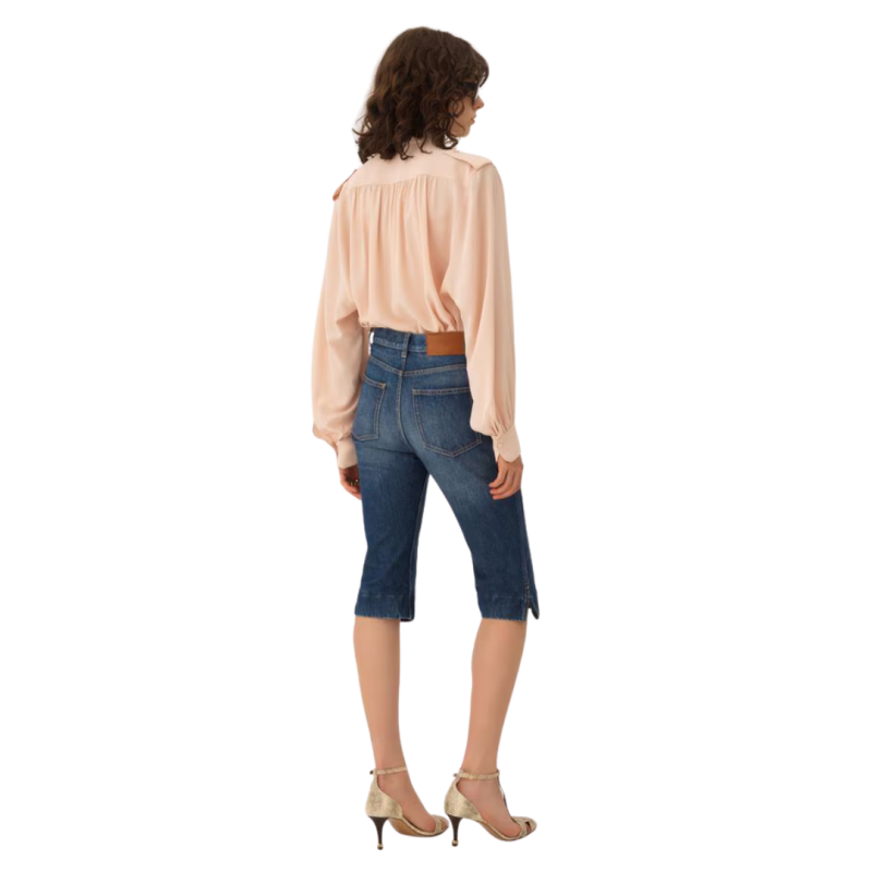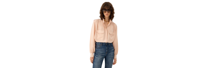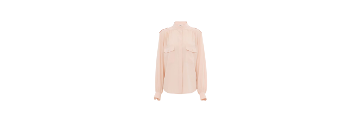 CHLOEBlouse froncée col montant soie crêpe rose épaulettes poches rabats