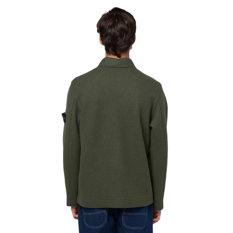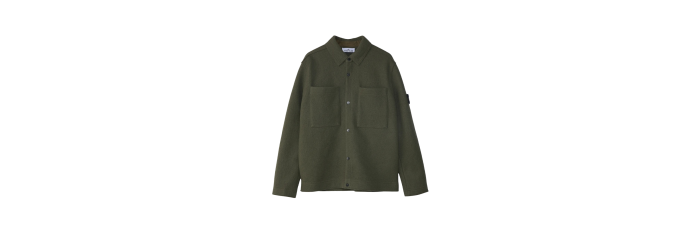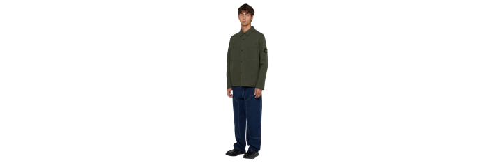 STONE ISLANDSurchemise bouton pression laine feutre kakie poche poitrine