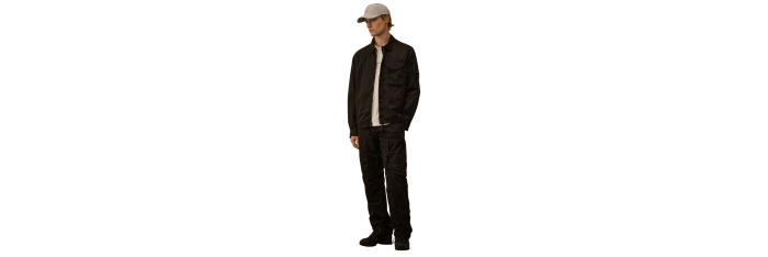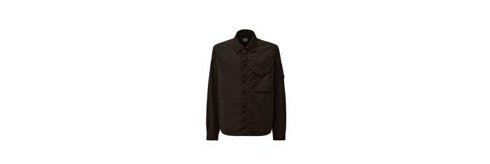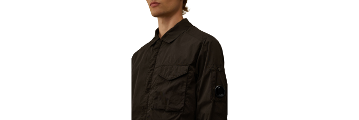 Surchemise confectionnée en Chrome-R, un nylon multifilament brillant 100 % recyclé, confectionné à partir de chutes de production et transformé en une nouvelle fibre certifiée par le Global Recycled Standard (GRS). Cette chemise comporte la lentille emblématique de C.P. Company, une fermeture à glissière intégrale à double sens avec rabat et une poche poitrine à bouton-pression. Finition avec poignets réglables par boutons-pression et doublure en sergé de coton. Teint en pièce avec traitement anti-goutte. Coupe régulière.