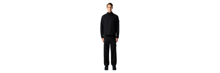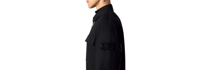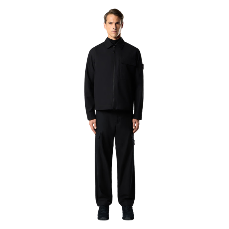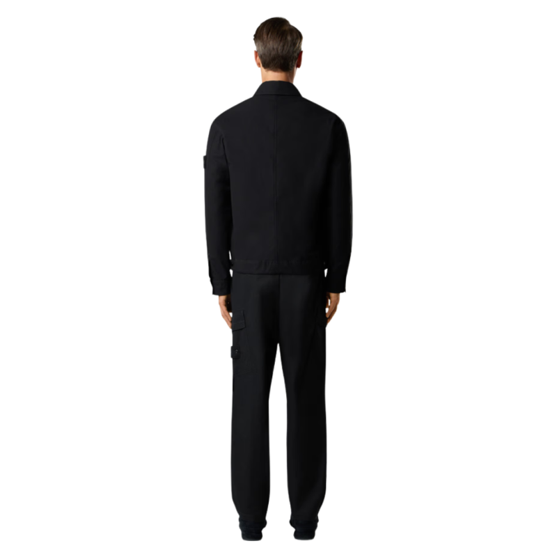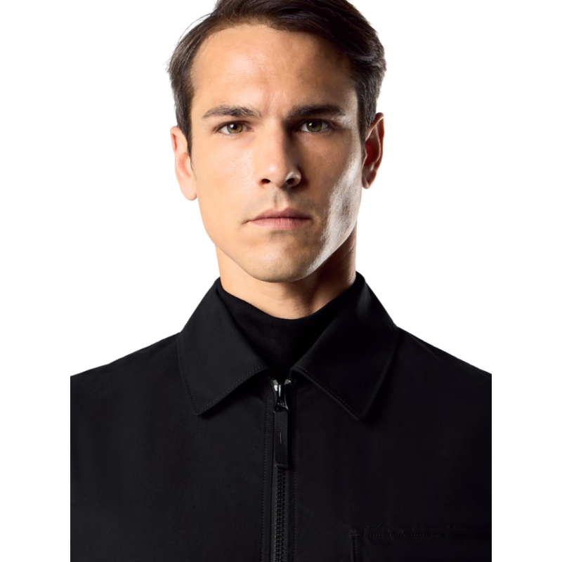 STONE ISLANDChemise zippée toile coton bio noir poches Ghost Collection