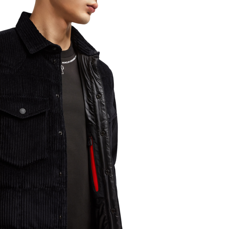 MONCLERDoudoune chemise Gelt coton velours noir côtelé bouton-pression